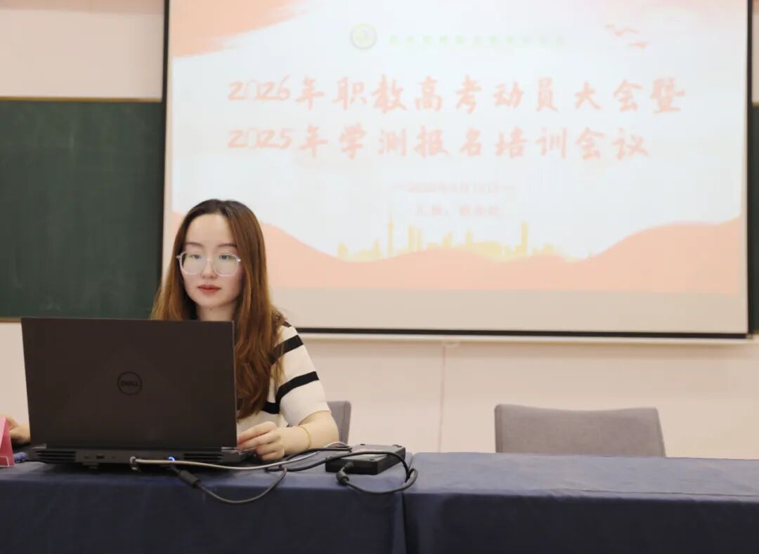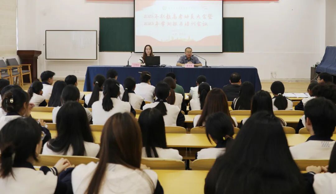 2025年9月15日,我校2026年职教高考动员大会暨2025年学测报名培训会议在阶梯教室召开。副校长朱万青、教务与科研处副主任王雪纯及高三年级全体师生参会,会议围绕“明确目标、科学备考、规范报名”三大核心目标展开,为2026年职教高考吹响冲锋号。