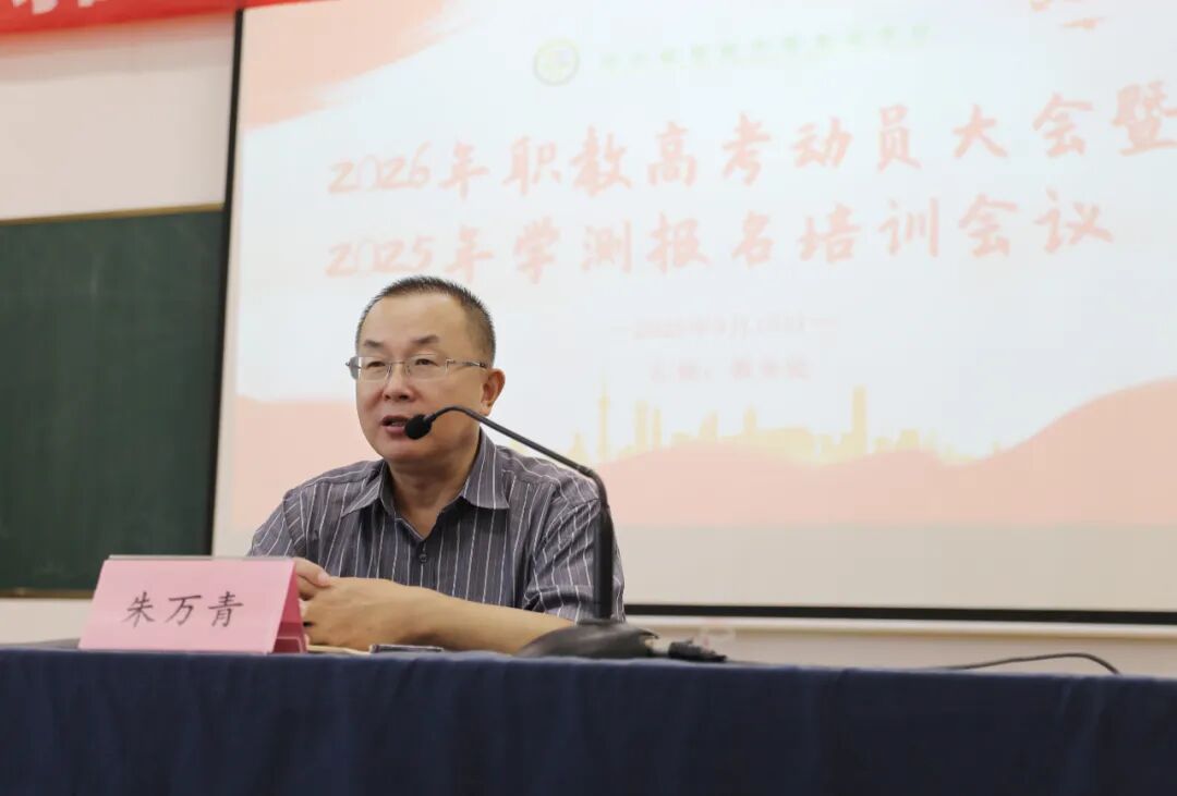 朱校长在动员讲话中鼓励同学们志存高远、明确目标,做信念坚定的追梦人。他指出,职教高考是国家职业教育改革的重要举措,为同学们提供了多元发展的广阔平台,希望同学们科学规划时间、夯实文化基础、强化专业技能,并强调学校已组建最强师资团队,全力支持学生备考。